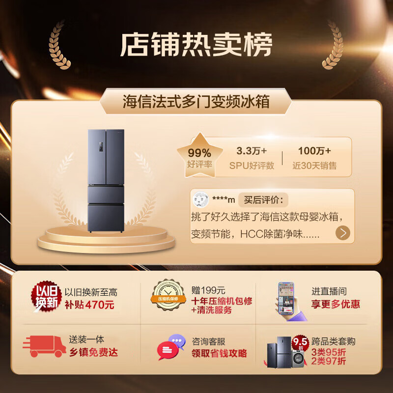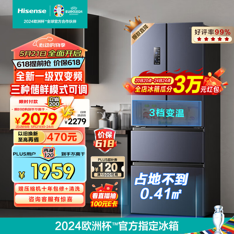 海信(Hisense)四开门冰箱法式328升无霜冰箱一级能效双变频超薄家用电冰箱BCD-328WNK1DPT除菌净味小占地价格:2279.00元!