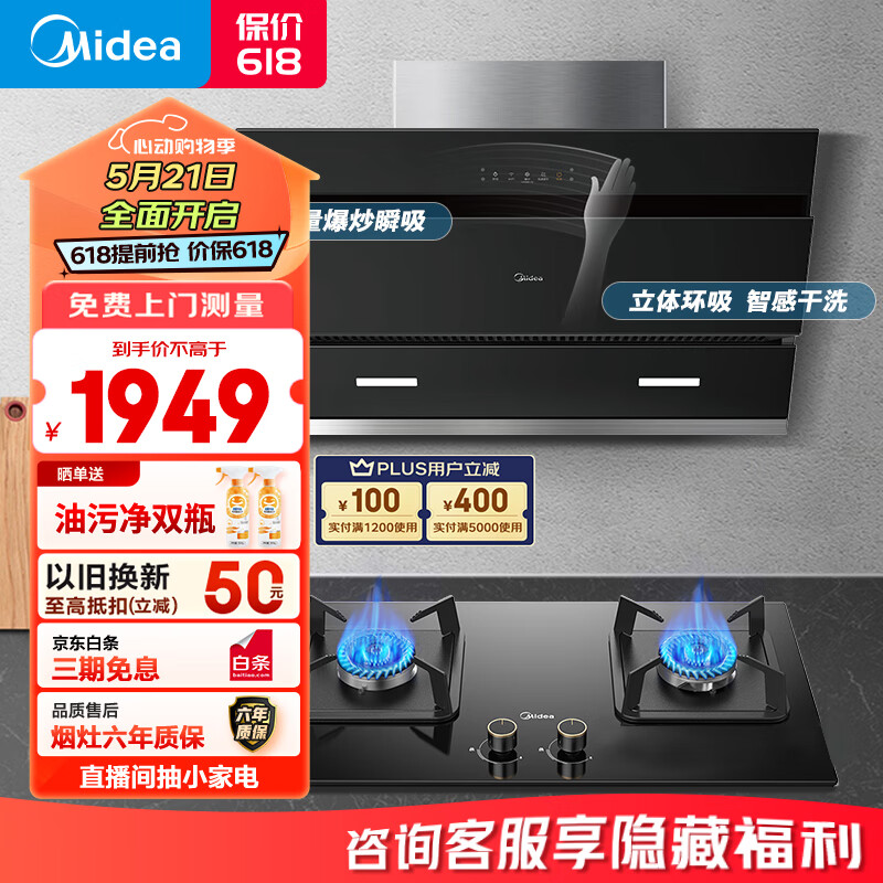 美的(Midea)抽油烟机燃气灶套装小户型厨房烟灶套装 21大吸力自动清洗油烟机灶具套装J25S+Q325天然气价格:1949.00元!