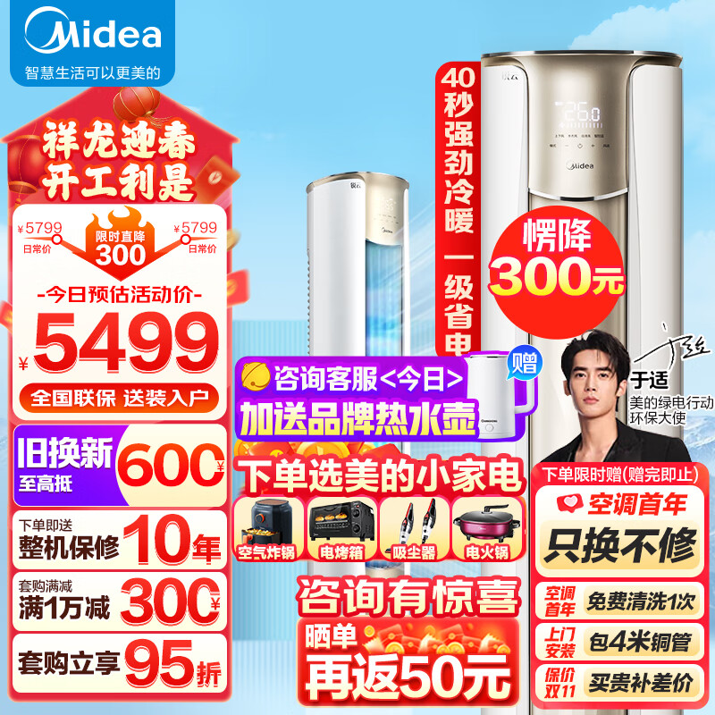 美的(Midea)锐云2代 2匹 新一级能效变频冷暖大风口自清洁家用客厅立式空调柜机 KFR-51LW/N8XHA1Ⅱ 以旧换新价格:5549.00元!