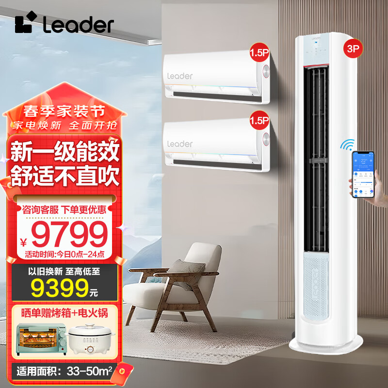 Leader海尔智家空调组合套装二室一厅新一级能效冷暖变频节能壁挂式立式家用客厅卧室空调柜挂套餐[家电]价格:9799.00元!