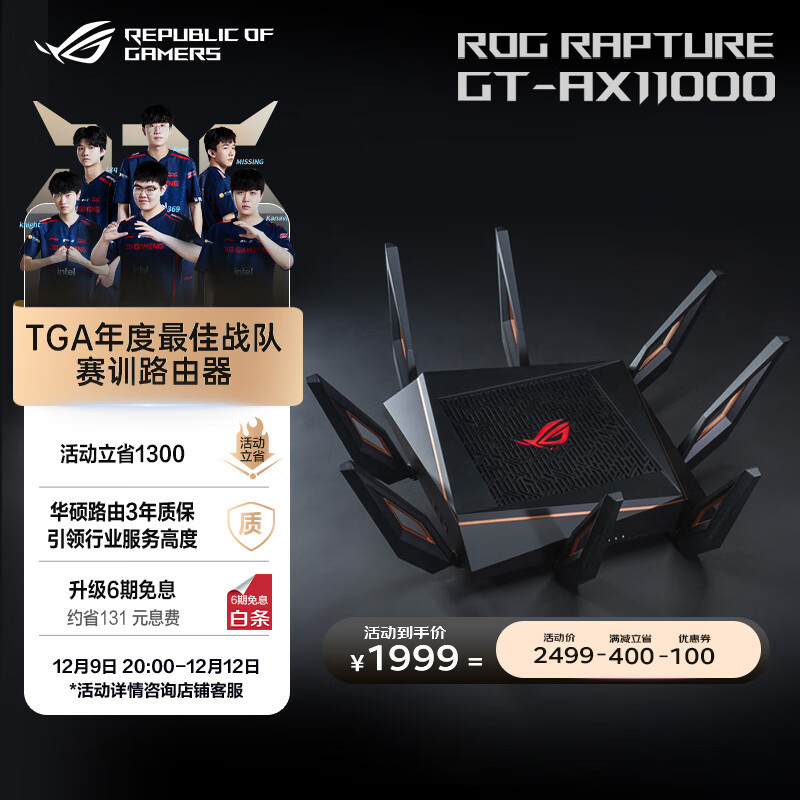 华硕(ASUS)ROG GT-AX11000无线路由器千兆全屋WiFi6/三频11000M游戏路由器/家长管理路由/华硕八爪鱼价格:2499.00元!