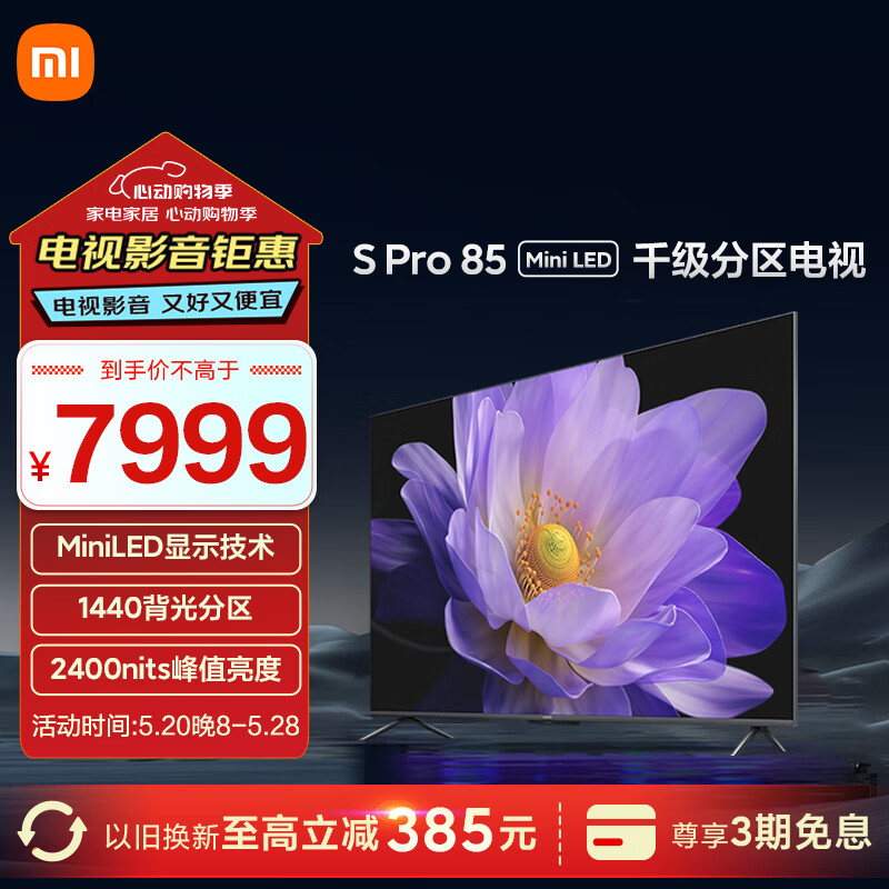 小米电视 S Pro 85英寸 Mini LED 2400nits 1440分区 4GB+64GB 小米澎湃OS系统 液晶电视机L85MA-SM价格:7499.00元!