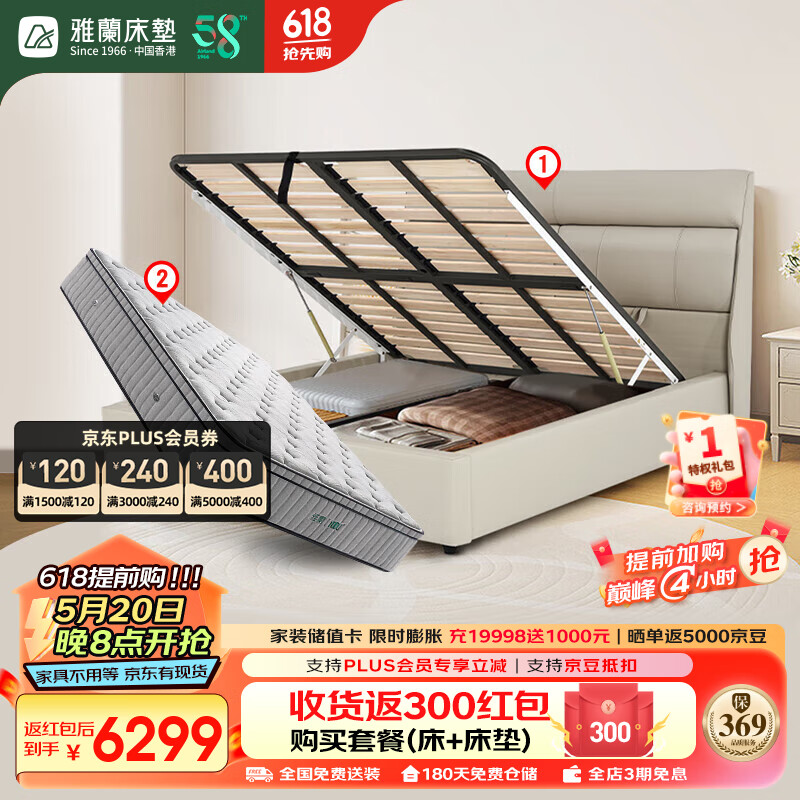 雅兰简约风真皮床主卧靠背双人皮艺床气动 伯明翰+有度旗舰版 1.5*2米价格:7599.00元!