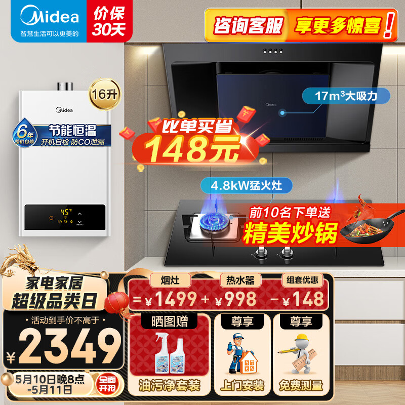 美的(Midea)侧吸抽油烟机灶具烟灶多件套装燃气热水器家用烟灶燃热厨房三件套JP11+Q217B+16HWF天然气价格:2349.00元!