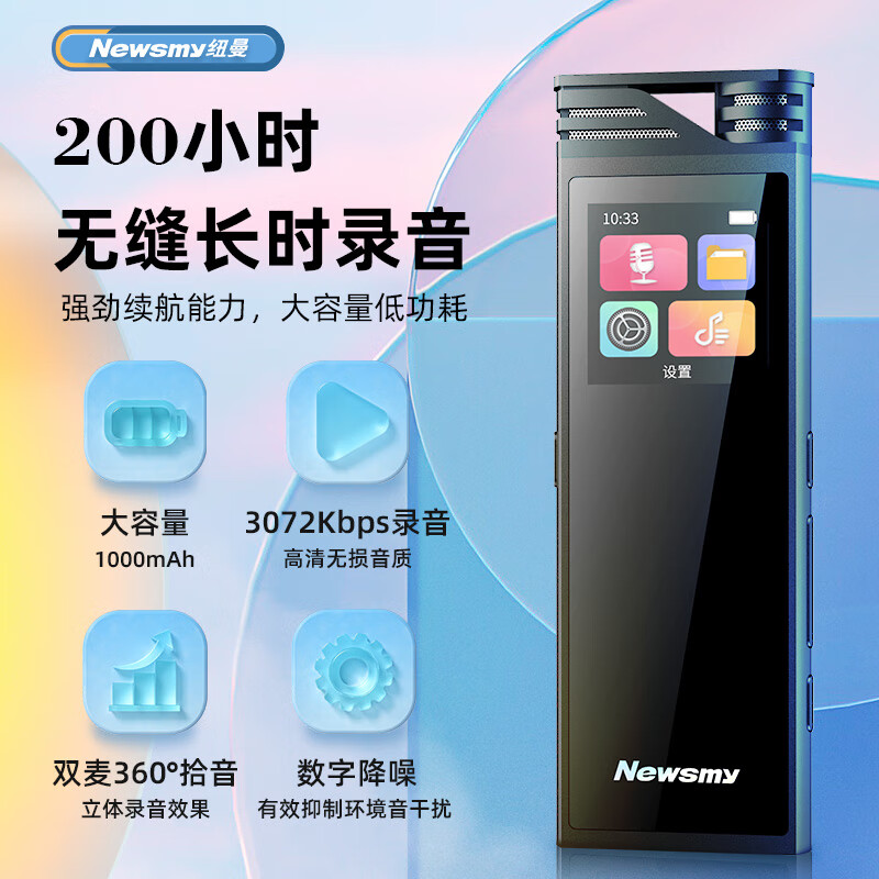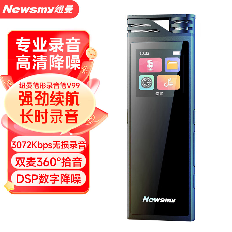 纽曼录音笔 V99 16G 大容量电池长时续航 高清彩屏专业降噪 3072Kbps无损录音 会议录音 录音器 黑价格:229.00元!