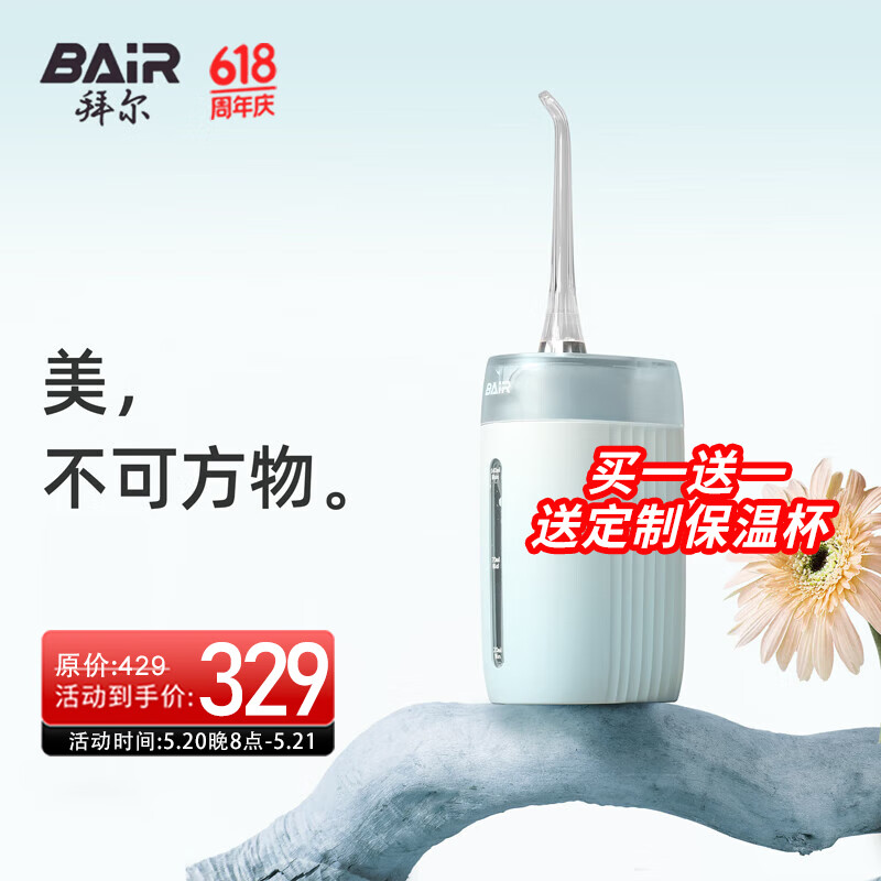 拜尔V5小方瓶 电动冲牙器 伸缩便携式正畸电动洗牙器家用洁牙水牙线冲洗器 送女男朋友礼盒装 小蓝瓶价格:329.00元!