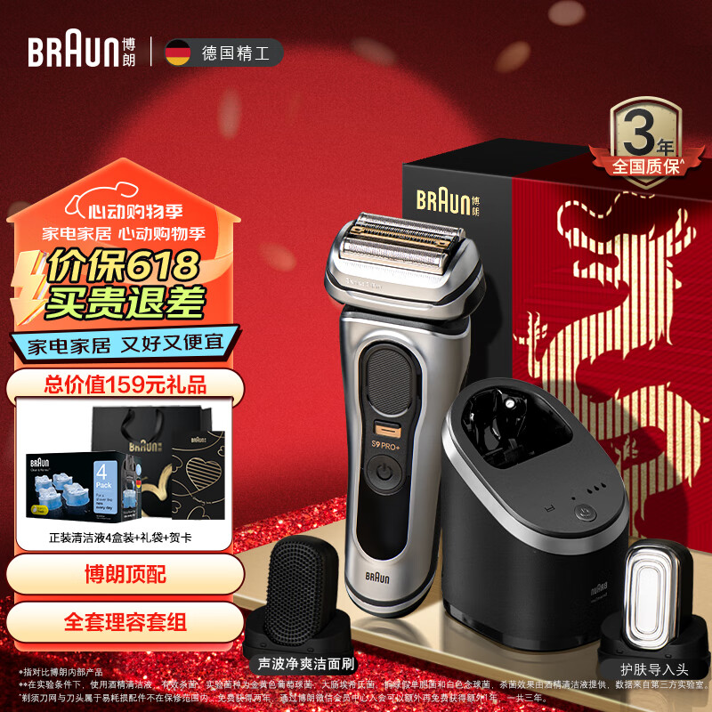 博朗(BRAUN)520礼物送男朋友9系pro+升级版清洁中心多配件礼盒款电动剃须刀整机进口往复式送老公价格:3399.00元!