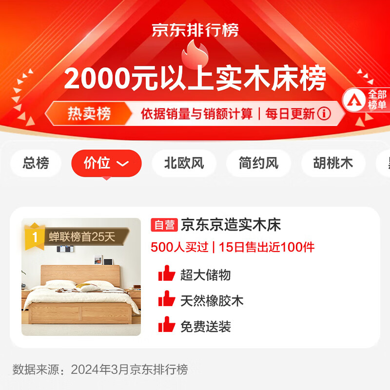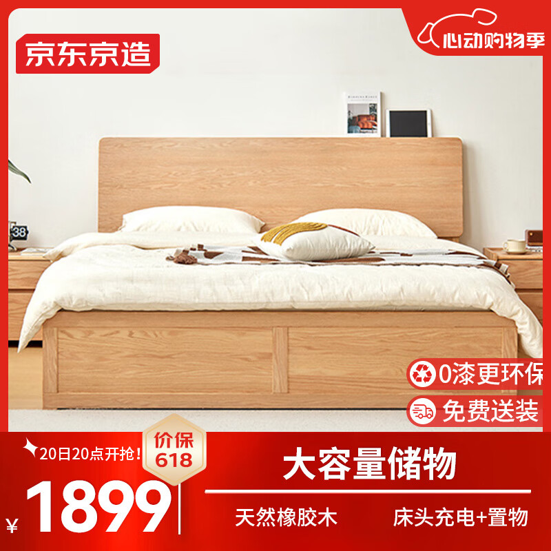 京东京造实木床 天然橡胶木超大储物加高靠背 主卧双人床1.5×2米BW10价格:2099.00元!