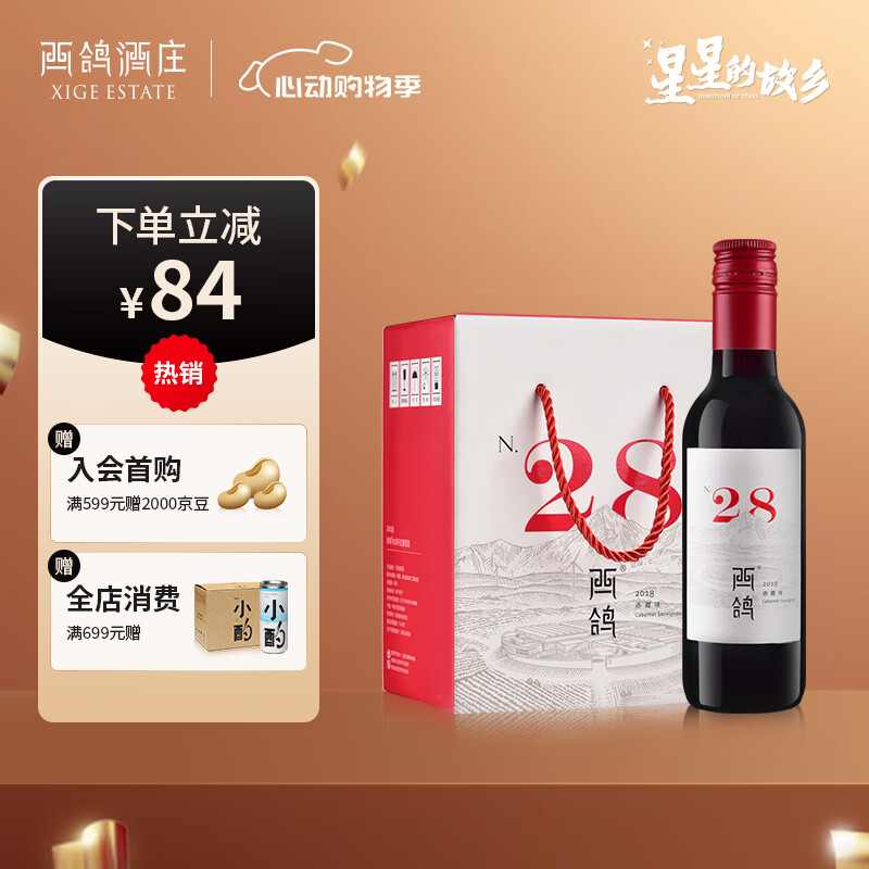 西鸽酒庄 宁夏贺兰山东麓 N28干红葡萄酒小瓶酒 国产精品红酒 星星的故乡 干红整箱 187ml*6价格:399.00元!