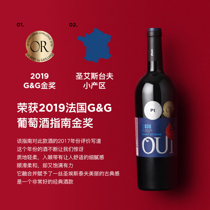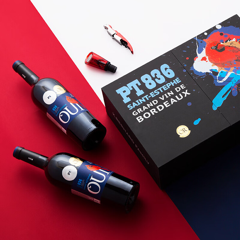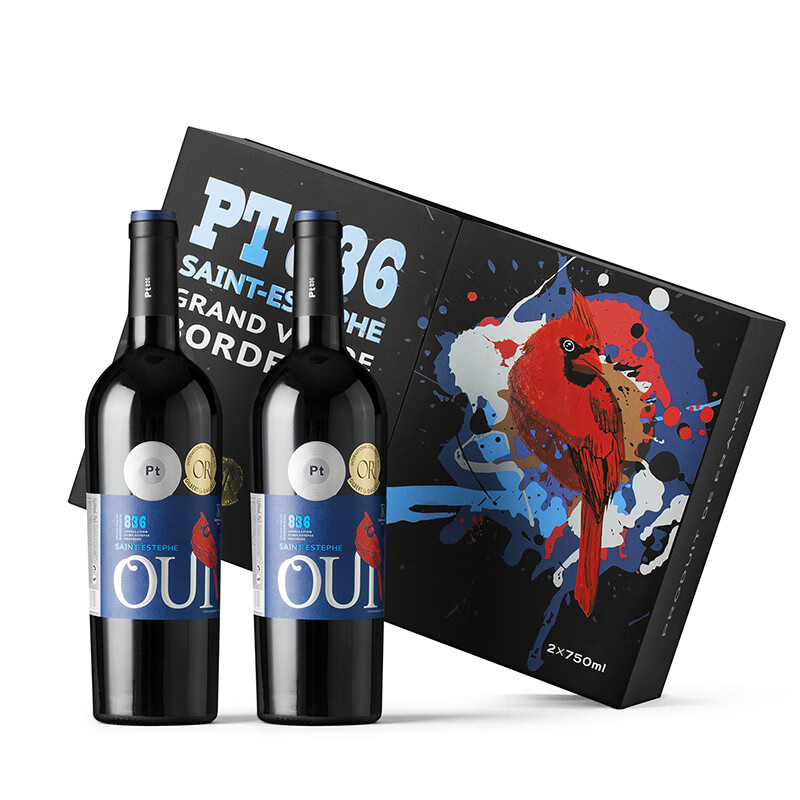 卡伯纳法国小红鸟圣艾斯台夫小产区AOC干红葡萄酒750ml*2送礼礼盒装价格:588.00元!