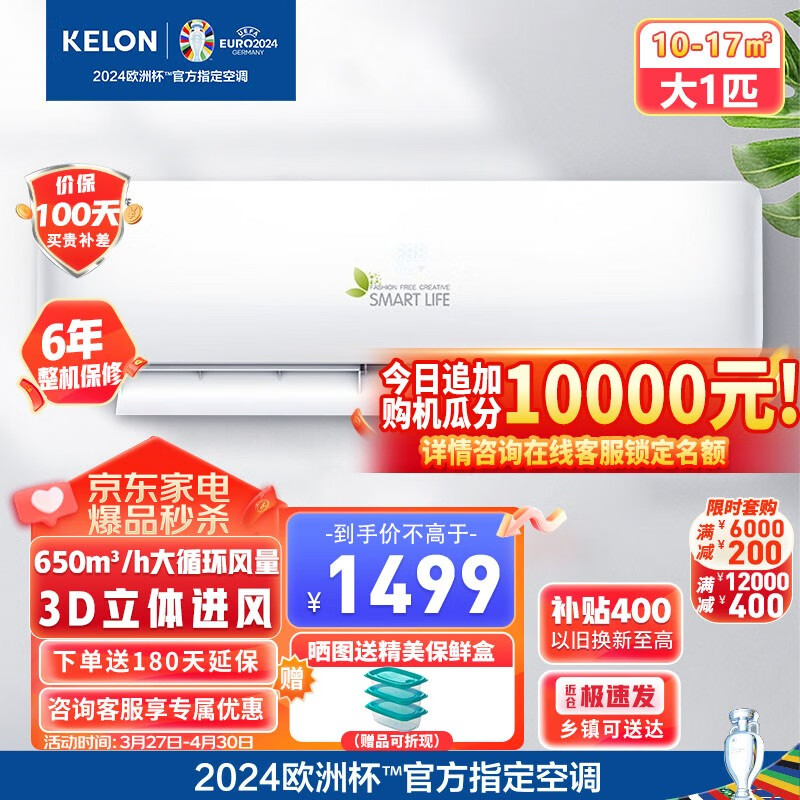 科龙(KELON)大1匹新能效定频单冷自清洁快速制冷除湿壁挂式挂机卧室家用空调KF-26GW/QA1X-X5价格:1489.00元!