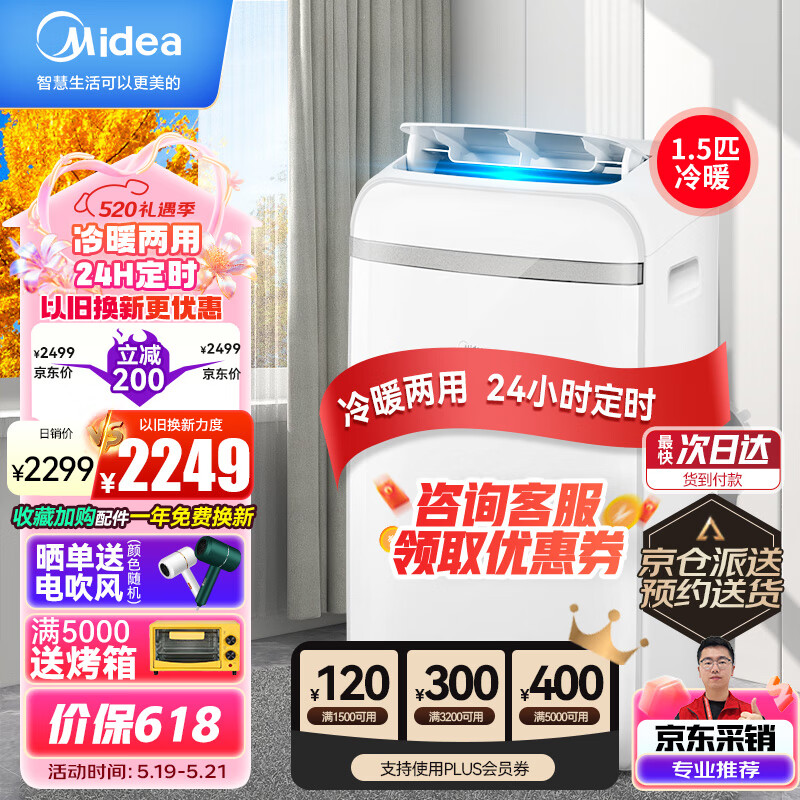 美的(Midea)移动空调冷暖一体机1.5匹 家用厨房空调免安装免排水 KYR-35/N1Y-PD2 京仓派送价格:2299.00元!