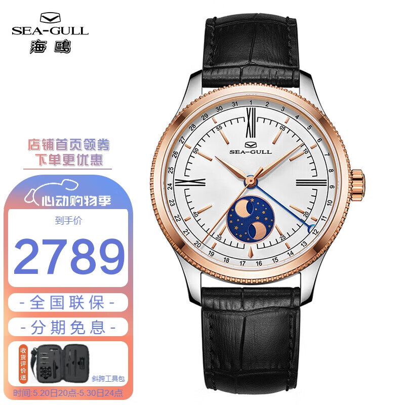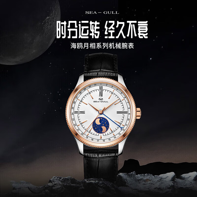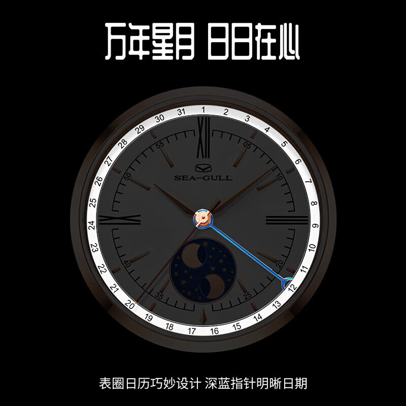 海鸥(SEAGULL)手表男士自动机械表 男表送男友礼物 日历月相腕表219.17.6170价格:2989.00元!