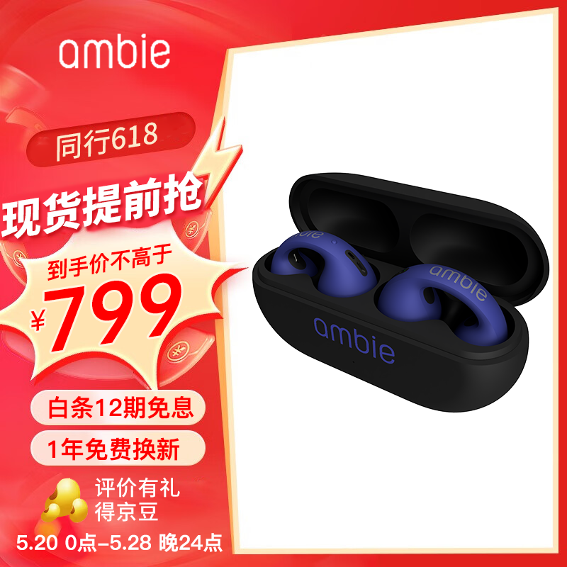 ambie耳夹式无线蓝牙耳机不入耳蓝牙耳机真无线蓝牙耳机AM-TW01 海军蓝价格:1499.00元!