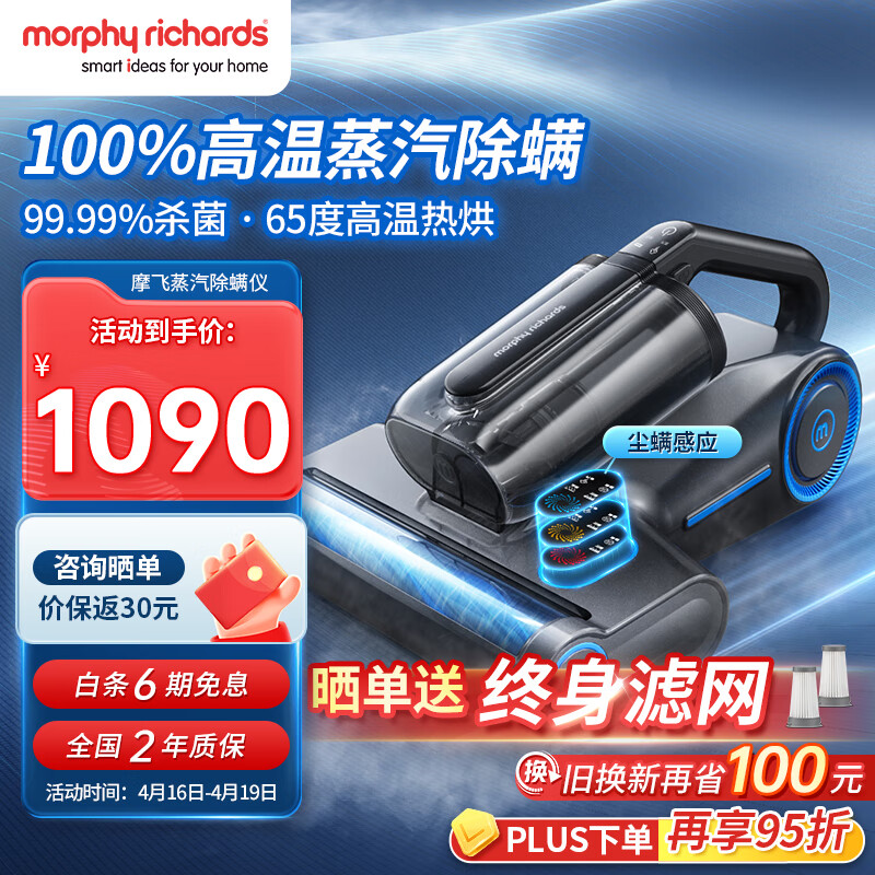 摩飞电器(Morphyrichards)除螨仪家用手持超声波高温蒸汽100%除螨吸尘器 床上蒸汽熨烫机大吸力热风祛湿拍打去螨虫机MR3102价格:1090.00元!