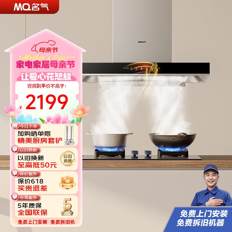 名气(MQ)老板抽吸油烟机灶具家用烟灶套装 欧式21风量大吸力顶吸式免拆洗5.2KW燃气灶 6515A+6812B天然气价格:2199.00元!