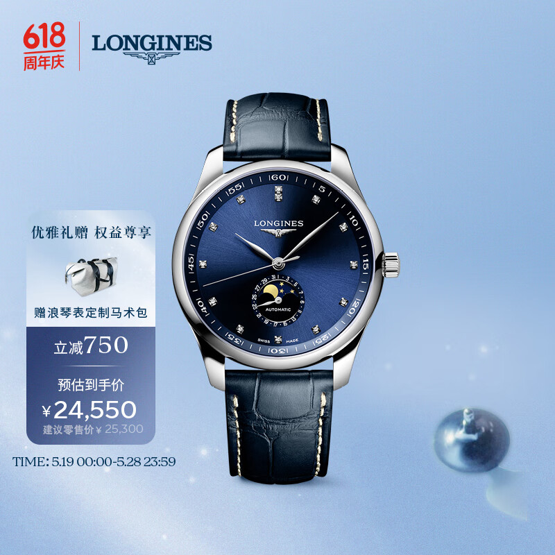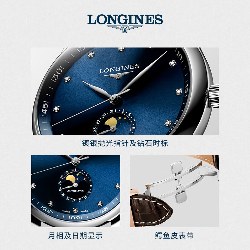 浪琴(LONGINES)瑞士手表 名匠系列 月相机械皮带男表 L29194970价格:24550.00元!