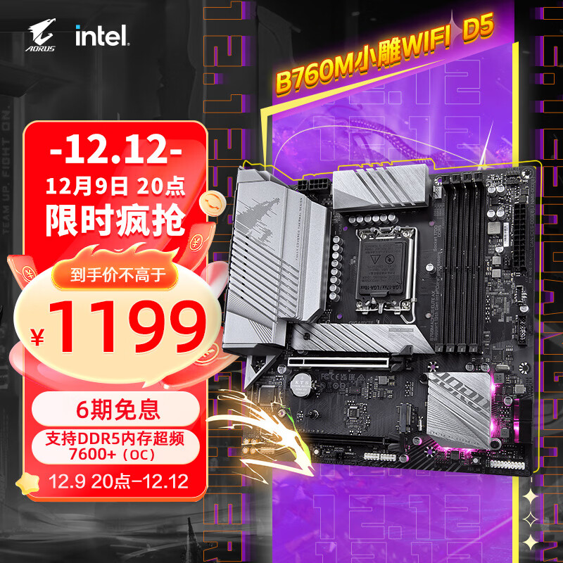 技嘉(GIGABYTE)小雕WIFI B760M AORUS ELITE AX 电脑主板DDR5支持CPU13700K/13600KF Intel B760 LGA 1700价格:1199.00元!
