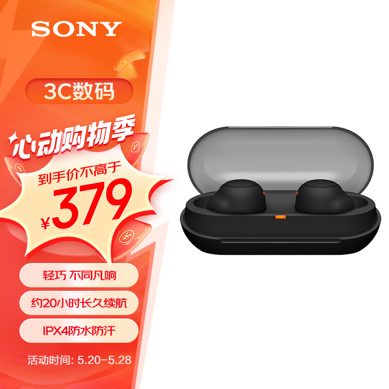 索尼(SONY)WF-C500 真无线蓝牙耳机 IPX4 防水防汗 黑色价格:379.00元!