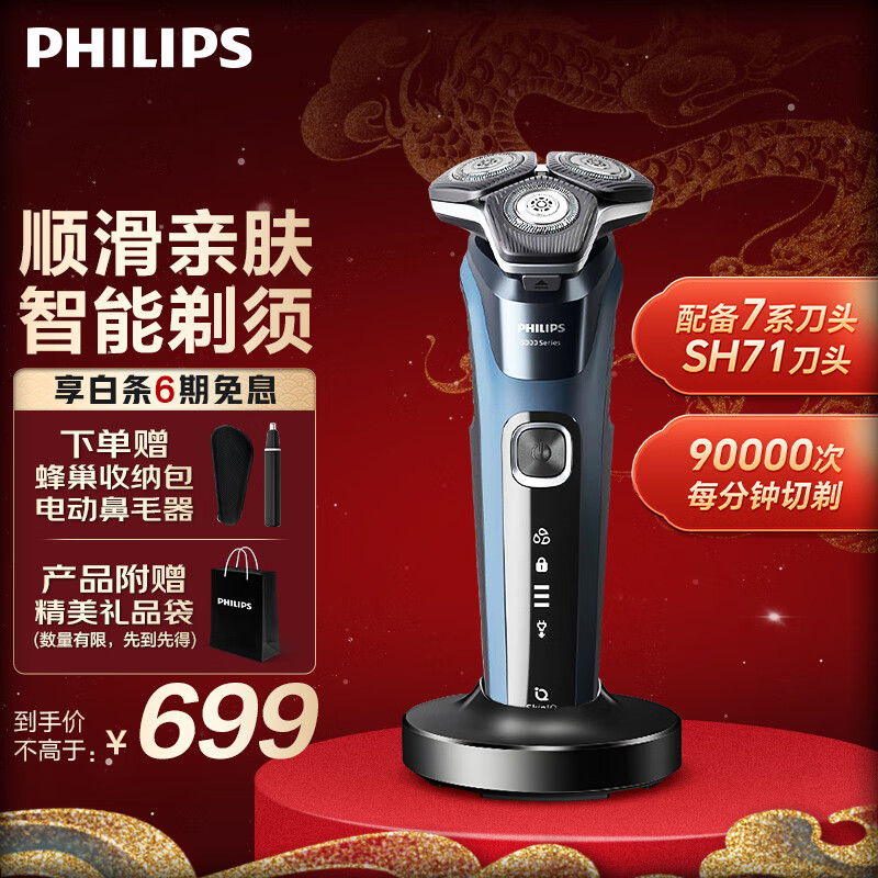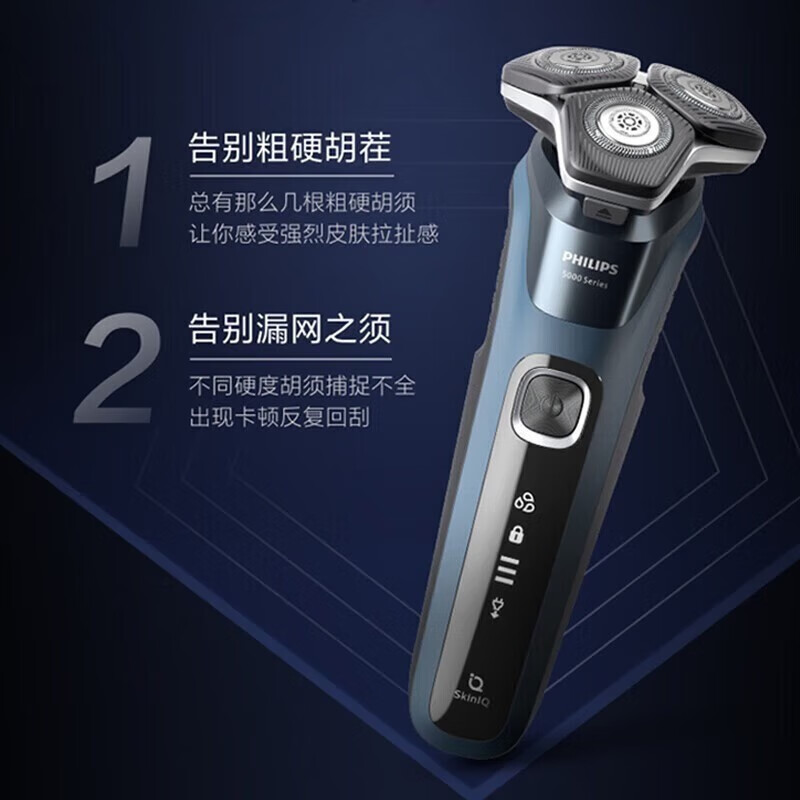 飞利浦(PHILIPS)剃须刀电动 男士刮胡刀 蜂巢5系 胡须刀送男友送父亲 【升级带充电底座丨海洋蓝】S5830/05 普通装价格:699.00元!