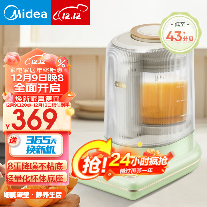 美的(Midea)柔音破壁机家用1.2升豆浆机低音安睡40分贝隔音罩智能全自动榨汁机多功能辅食机降噪料理机早餐机 【纤薄底座 | 轻量杯体】MJ-PB40ST21价格:499.00元!