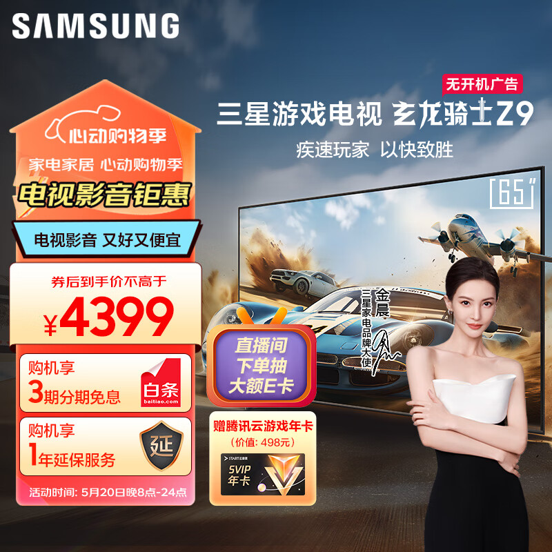 三星(SAMSUNG)玄龙骑士Z9 65英寸 3+64G 专业游戏电视 5.8ms 低延迟 无开机广告 超薄4K 120Hz UA65ZU9000JXXZ价格:4499.00元!