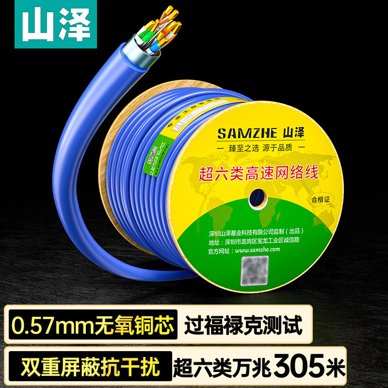 山泽 超六类双屏蔽网线 CAT6A类工程家装万兆网络宽带HSYPVP-6A 抗干扰降衰减无氧铜线305米 LC6305价格:1359.00元!