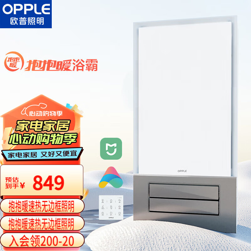欧普(OPPLE)无边框照明米家智能抱抱暖浴霸灯卫生间照明排气一体F186YPRO-BP价格:849.00元!