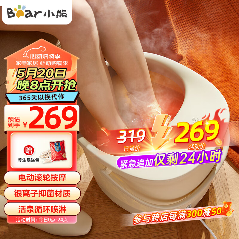 小熊(Bear)泡脚桶 全自动足浴盆足浴桶 银离子洗脚盆泡脚盆电动按摩恒温加热洗脚桶 生日礼物ZYP-E05Q1价格:319.00元!
