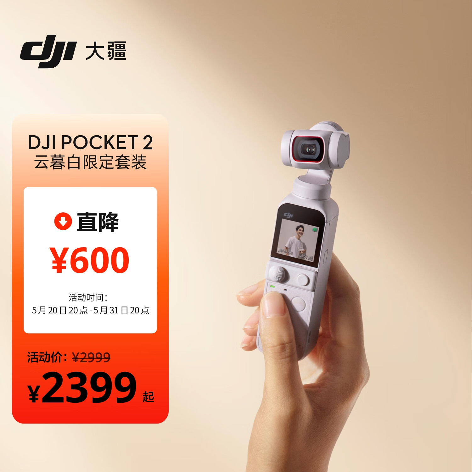大疆 DJI Pocket 2 云暮白限定套装 灵眸口袋相机小型手持云台摄像机 vlog全景运动相机+128G内存卡价格:2498.90元!