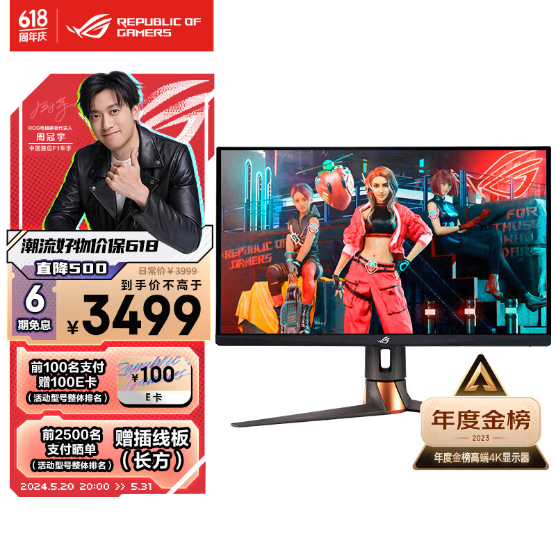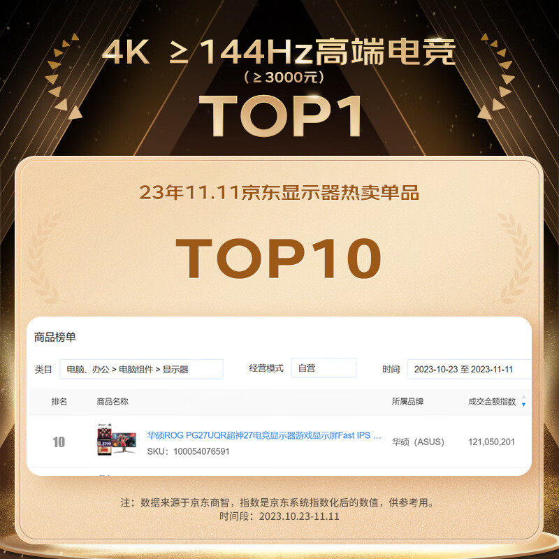 华硕ROG PG27UQR超神27英寸电竞显示器FastIPS 160Hz刷新4K144Hz显示器HDR600 G-SYNC神光同步HDMI2.1价格:3498.00元!