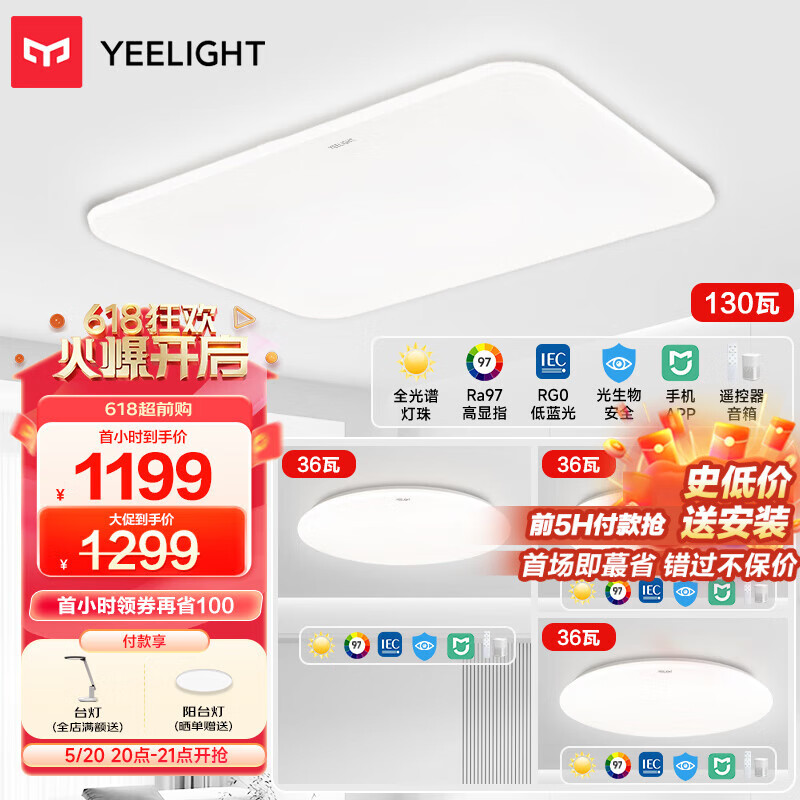 Yeelight易来led全光谱护眼吸顶灯卧室超薄智能低蓝光现代简约灯具歆月价格:1699.00元!