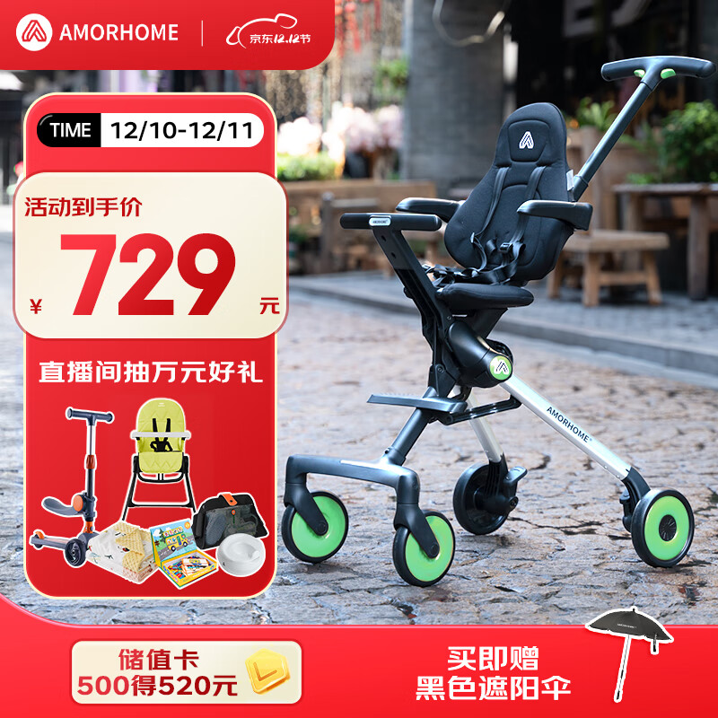 AMORHOME遛娃神器婴儿推车可坐可躺轻便折叠宝宝溜娃折叠小易收绿色价格:950.00元!