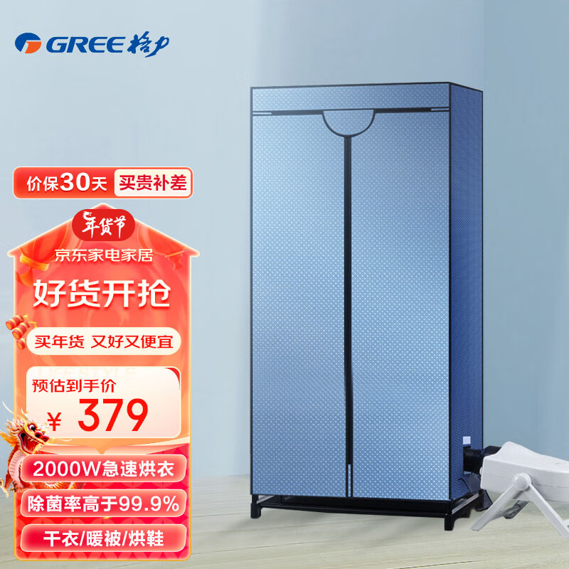 格力家用干衣机烘干机烘衣机20斤大承重烘干衣柜 功率2000w 双层定时机械式按键(NFA-20-WG)价格:379.00元!