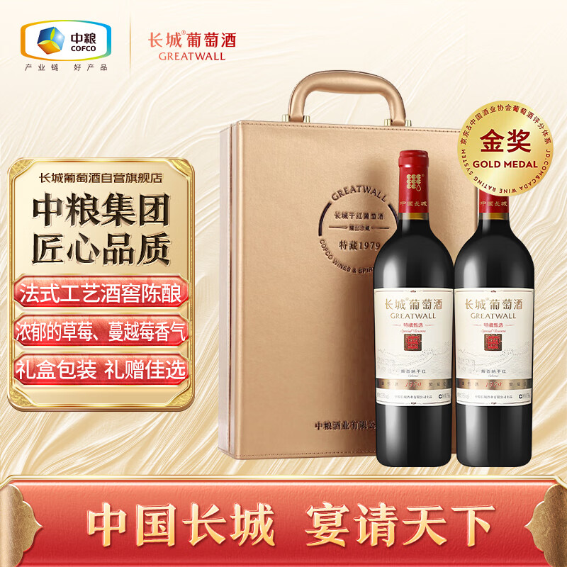 长城 耀世珍藏 解百纳干红葡萄酒 750ml*2瓶 双支礼盒含酒具价格:219.00元!