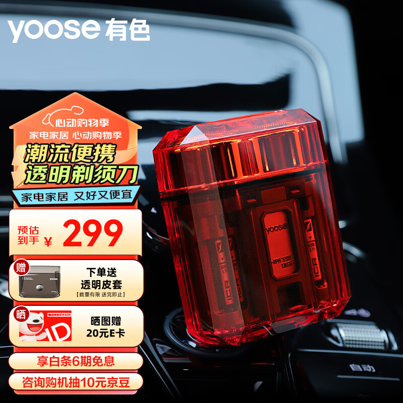 有色(yoose)电动剃须刀 潮流便携 男士刮胡刀 透明机身 生日520情人节礼物送男友 胡须刀礼盒 ICE 透明红价格:399.00元!