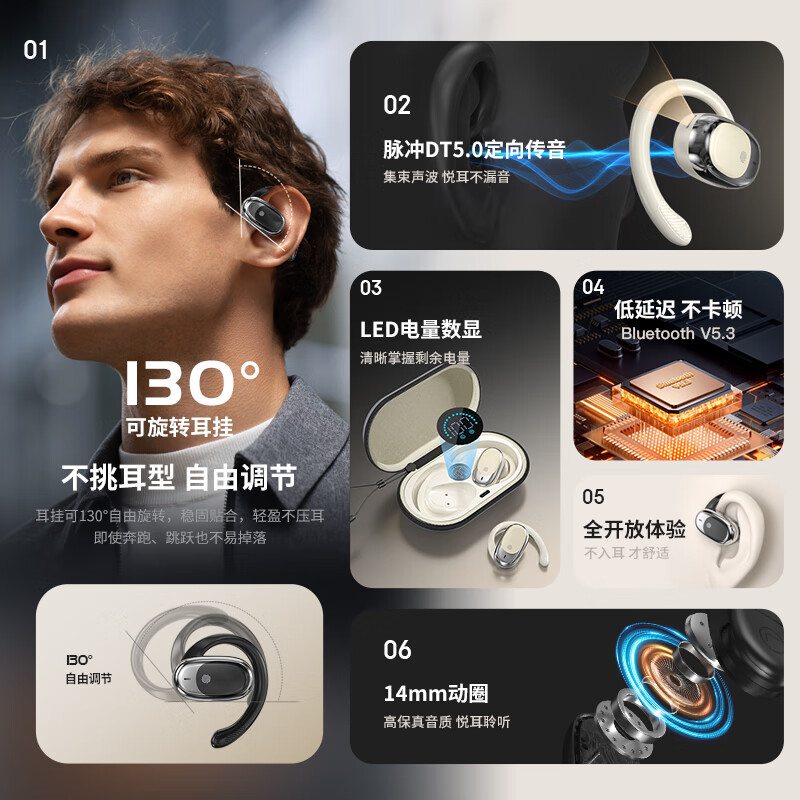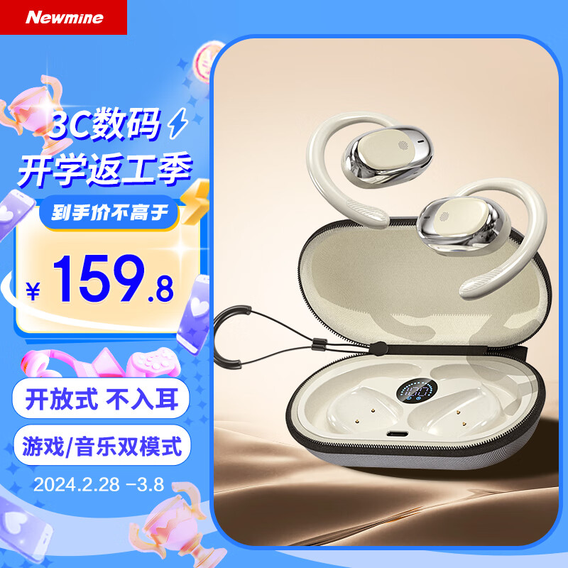纽曼【开放不入耳】挂耳式蓝牙耳机开放式真无线不入耳骨传导概念舒适运动跑步耳夹式耳机 版米色价格:188.00元!