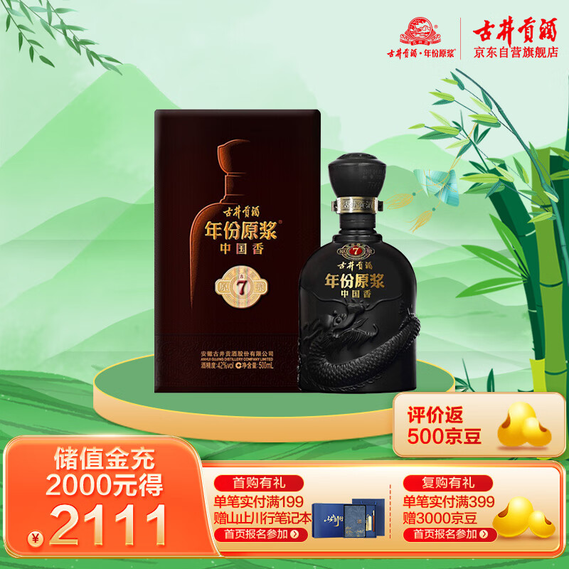 古井贡酒 年份原浆中国香古7 浓香型白酒 42度500ml*1瓶价格:270.59元!