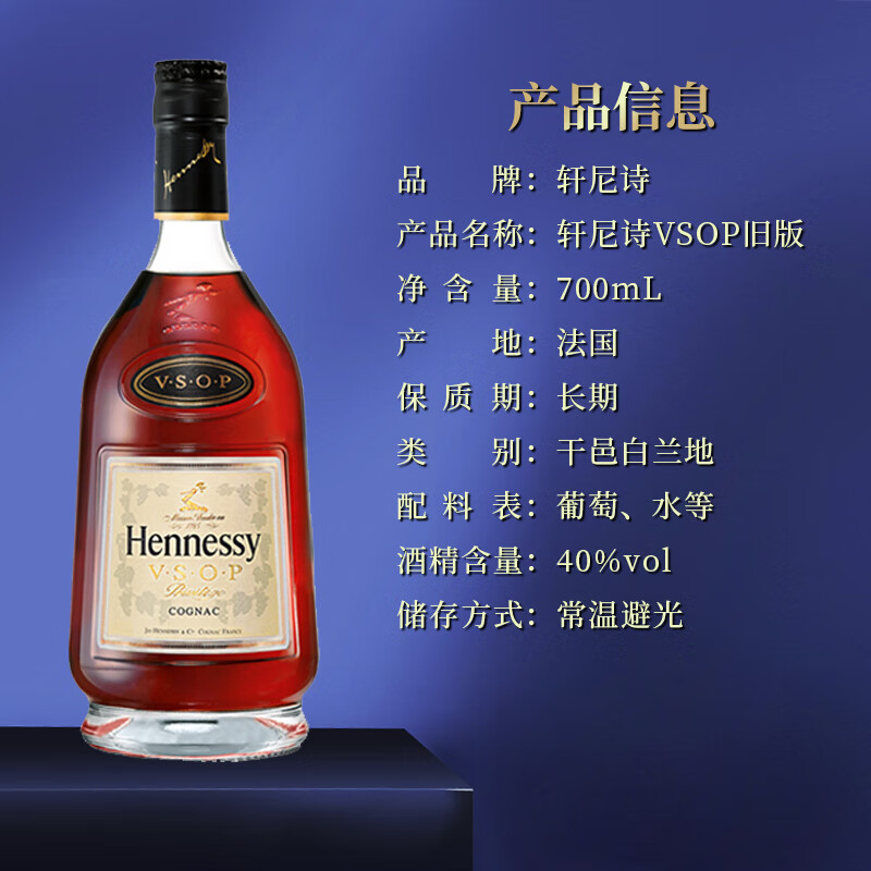 轩尼诗(Hennessy) VSOP 洋酒 干邑白兰地 700ml 有码价格:385.00元!