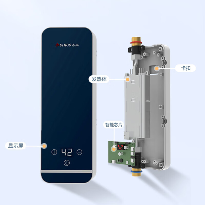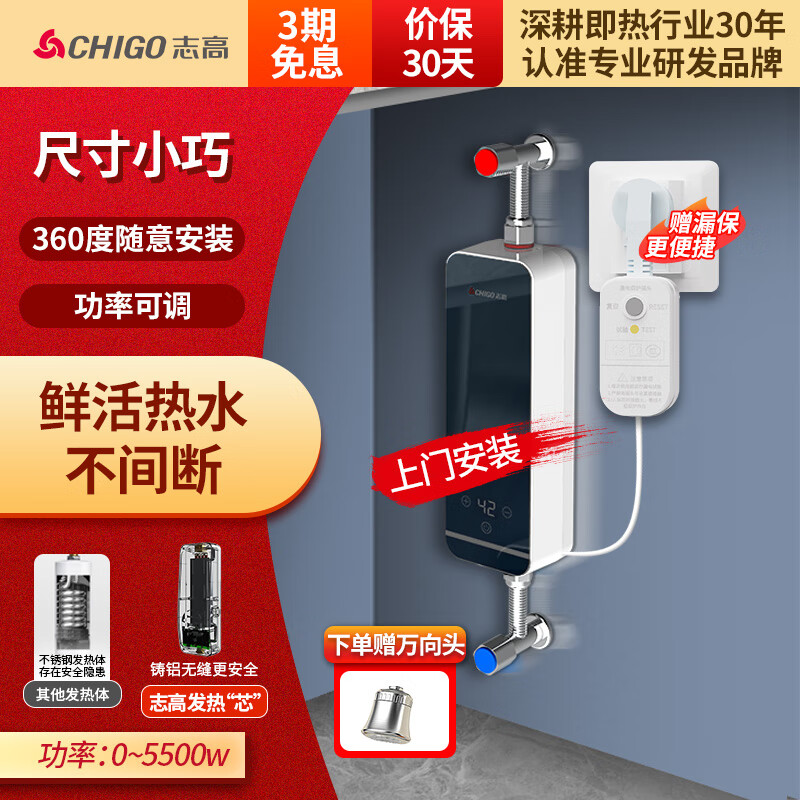 志高(CHIGO)即热式小厨宝即热式电热水器5500W厨房热水器集成免储水下进上出热水宝可台上台下包安装ZG-KB505价格:308.00元!