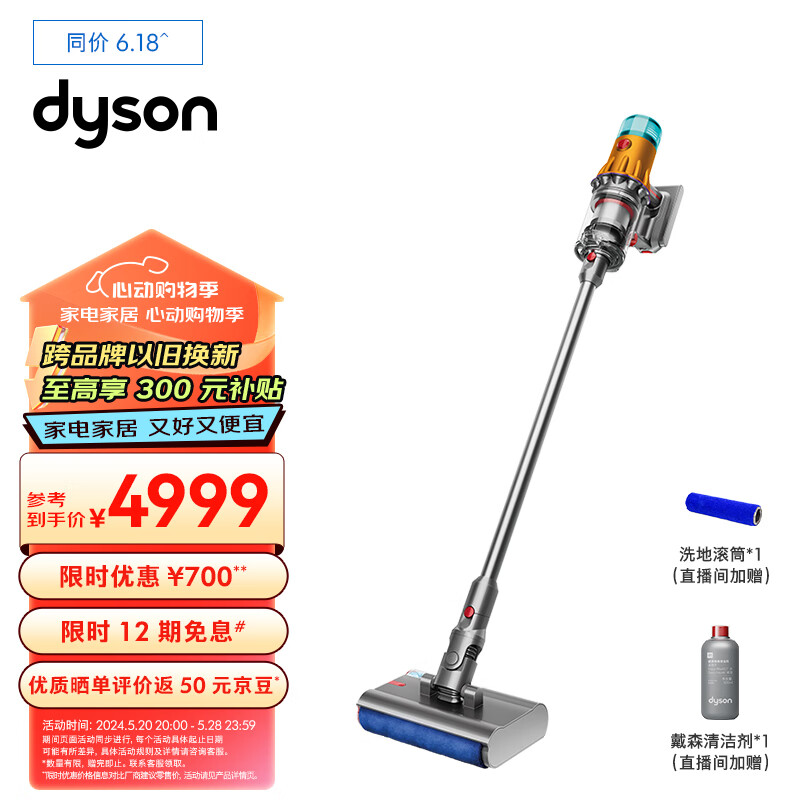 戴森(DYSON)V12 Detect Slim Nautik 轻量吸尘洗地机 手持无线家用吸拖一体吸尘器 除螨吸尘洗地干湿两用价格:5699.00元!