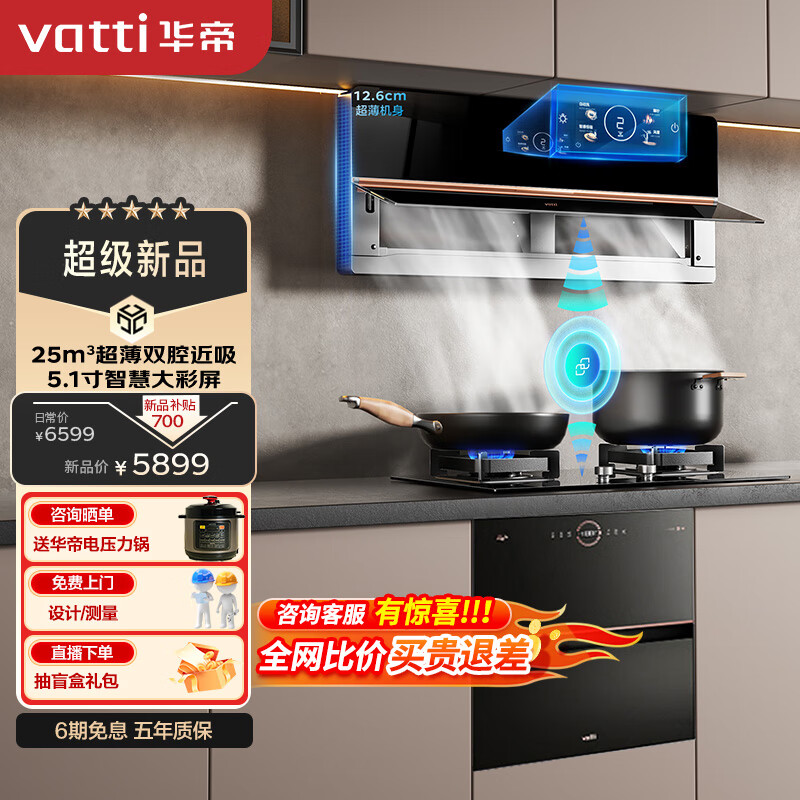 华帝(VATTI)抽油烟机理想家X6S变频超薄近吸双腔25风量油烟机灶具消毒柜套装 i111X6S+100B+3036(天然气)价格:5899.00元!