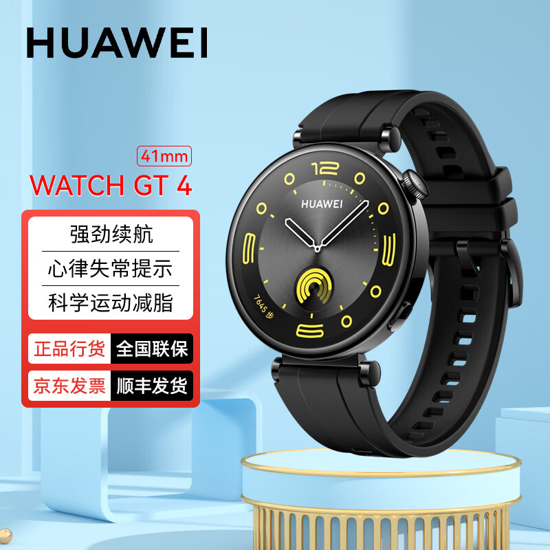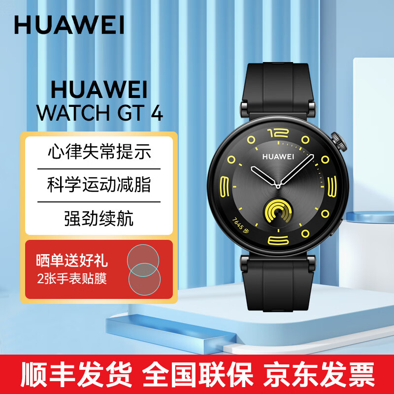 华为(HUAWEI)WATCH GT 4 运动智能手表提示科学运动减脂血氧监测蓝牙通话(41mm) 幻夜黑 黑色氟橡胶表带价格:1268.00元!
