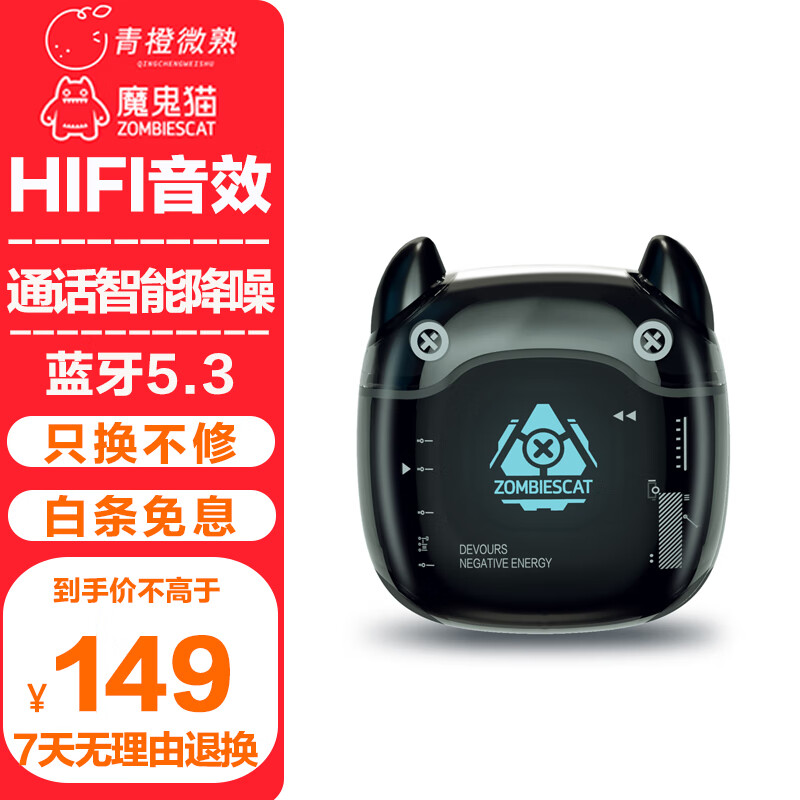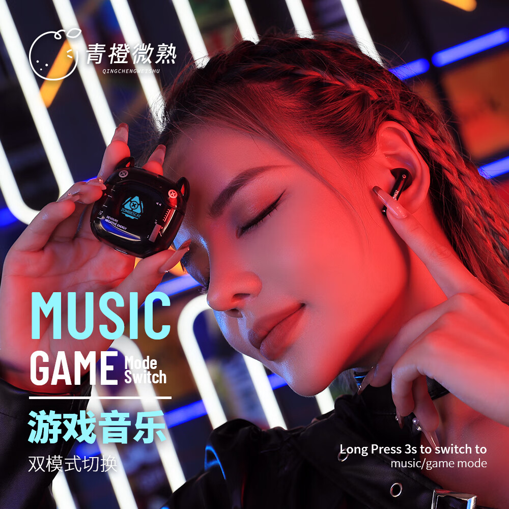 青橙微熟魔鬼猫B1真无线蓝牙耳机 音乐降噪通话游戏运动长续航半入耳式蓝牙安卓苹果手机通用 黑色价格:169.00元!