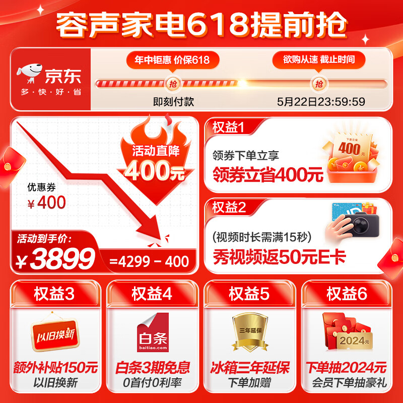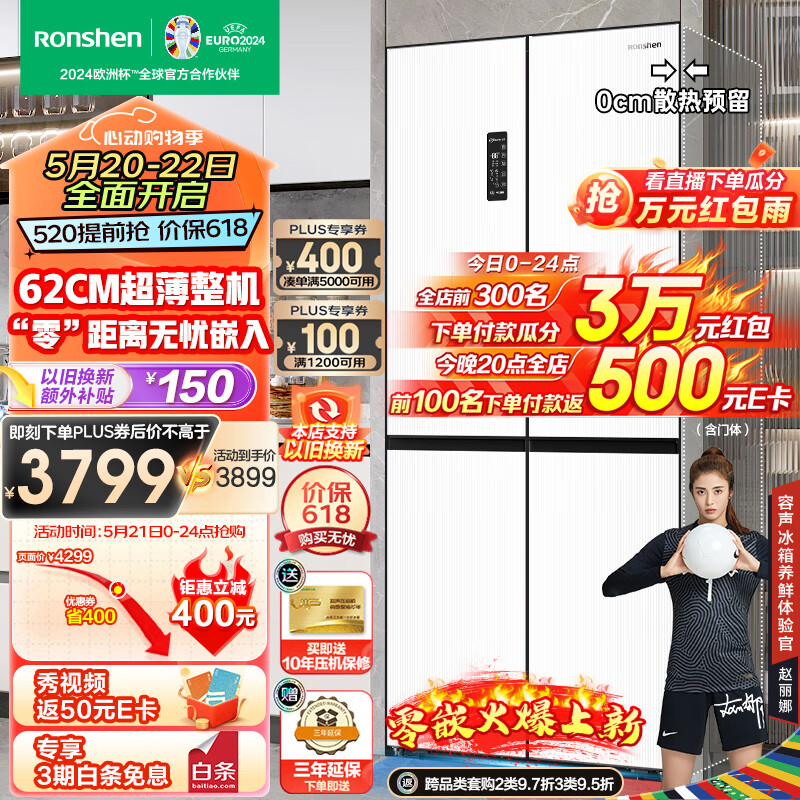 容声(Ronshen)蓝光养鲜零嵌477升十字对开四开门超薄嵌入式冰箱家用一级变频大容量底部散热BCD-477WD3FPLA白色价格:4299.00元!