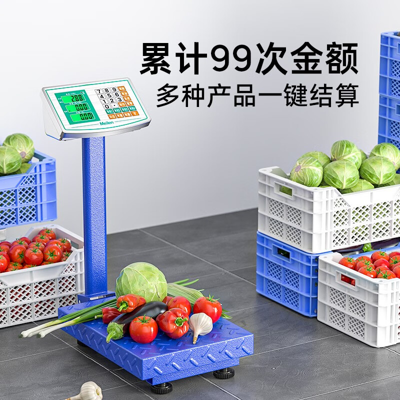 Meilen高精度台秤电子秤商用充电款落地可折叠称重电子称摆摊卖菜货物计价秤大型工业地磅秤计数快递秤 【大液晶屏黑字】300KG可折叠40*50加大秤面价格:268.00元!
