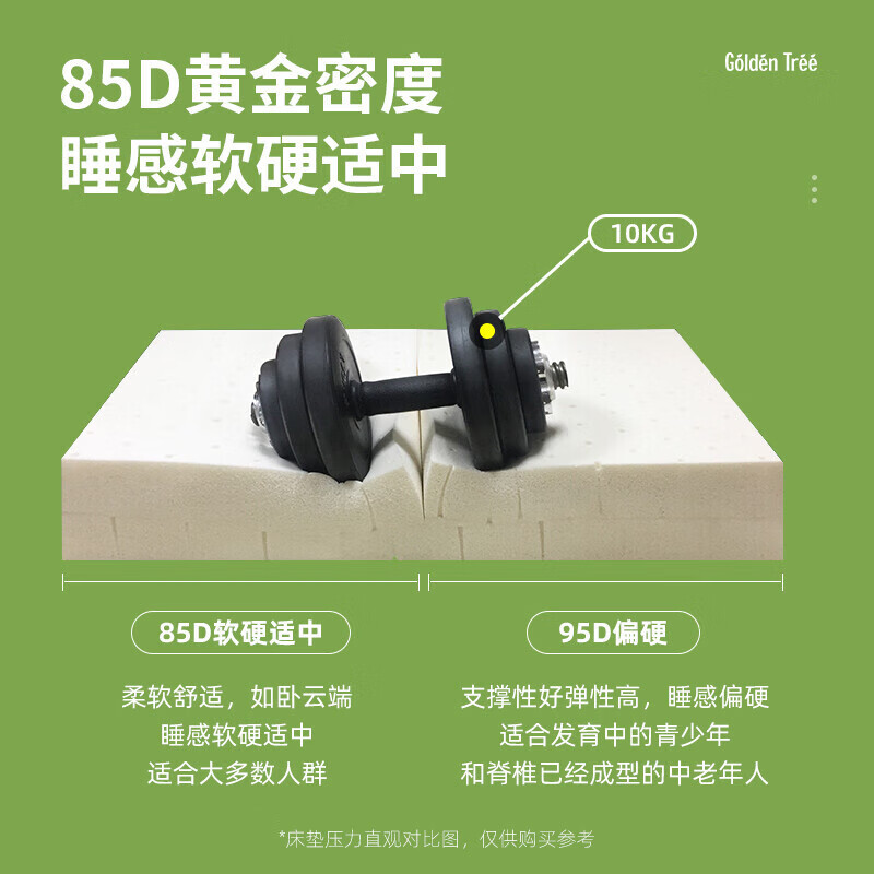 金橡树泰国进口天然乳胶床垫加厚宿舍学生单人床垫90*190*7.5cm 云梦85D价格:764.00元!