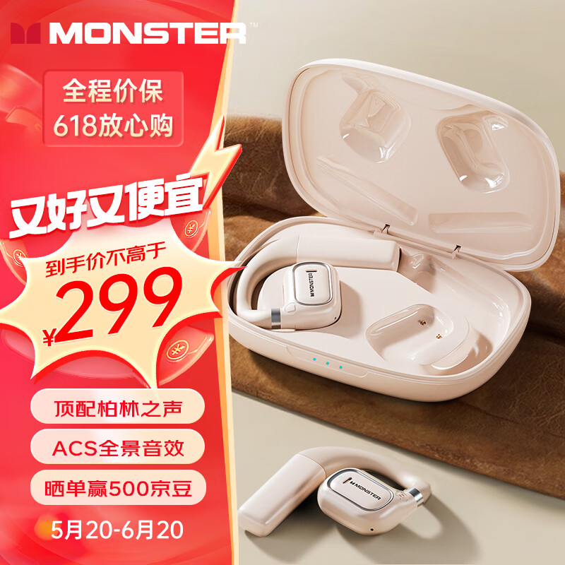 魔声(MONSTER)【全新顶配|柏林之声】无线蓝牙耳机 开放式不入耳骨传导概念挂耳式运动跑步降噪长续航 XKO01米色价格:399.00元!