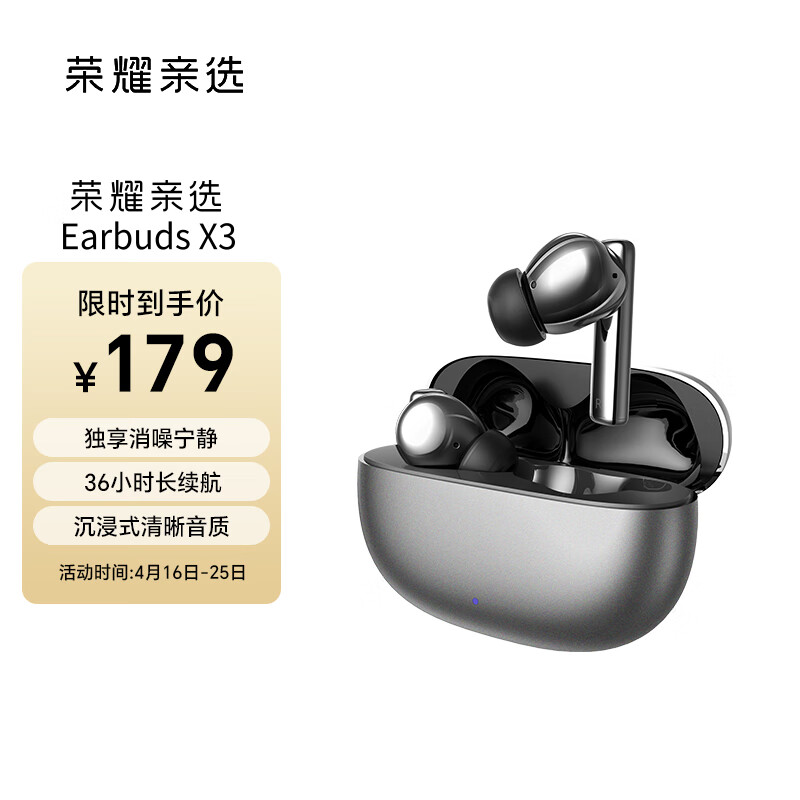 荣耀亲选Moecen Earbuds X3 钛银色 主动降噪/真无线蓝牙耳机/36小时超长续航 苹果华为小米手机价格:179.00元!