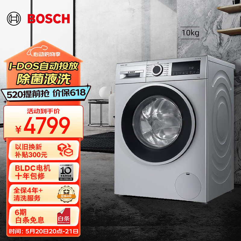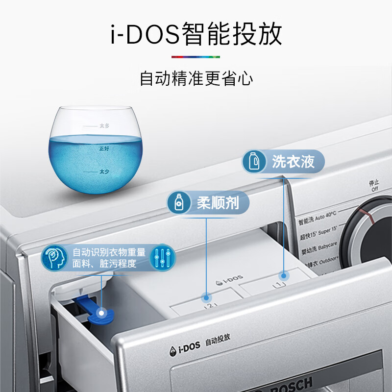 博世(BOSCH)【净效除菌】10KG变频全自动家用大容量1400转i-DOS智能投放15分钟速洗滚筒洗衣机WGA154A80W价格:5156.30元!
